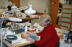 Here at The Strong, we take dolls seriously. Archeological evidence places dolls among the very oldest playthings and proves that children have enjoyed them since ancient times. More recently, dolls played an important part in the life of the museum’s founder, Margaret Woodbury Strong. Margaret started collecting dolls as a girl and amassed more than 27,000 during her lifetime. Today, The Strong’s National Museum of Play builds on Margaret Strong’s collection, continuing to collect dolls and provide for their care. That care includes the museum’s Doll Conservation Lab which is well stocked with supplies like fabric samples, needles, thread, special adhesives, and cleaning solutions, and is ably staffed by dedicated Doll Conservator Darlene Gengelbach.