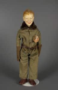 Lindbergh’s life took many turns, both for good and otherwise, after his heroic moment of glory. Still, Americans remembered him best for that one long, lonely flight. He stood as a symbol, not only of American initiative and courage, but of the country itself and the people themselves. New Jersey manufacturer Regal Doll produced a Lindbergh doll in 1928, complete with a furry collar and pilot’s gloves. Demonstrating America’s symbolic ownership, the company named the doll “Our Lindy.” To many, Lindbergh remained a model of American spirit, ingenuity, and bravery throughout the rest of the 20th century. And the toys help us all remember his early triumph.