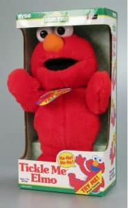 In 1993 Playskool released Hyman’s plush, purple Talking Barney, the popular dinosaur from the PBS series. Around the same time, Hyman began collaborating with Ron Dubren, another toy inventor, on an electronic toy that laughed and squirmed when its tummy was tickled. They pitched Tickles the Monkey to Tyco, which had, at that time, the license to produce toys based on Looney Tunes characters. Tyco planned to turn the concept into a Tasmanian Devil toy called Tickle Me Taz. Time passed, however, and Tyco’s Looney Tunes license lapsed. In the meantime, the company acquired the right to produce toys using Sesame Street characters. Tyco saw Elmo, the fluffy, red, three-year-old, as a perfect match for the Tickles toy. Tickle Me Elmo became the must-have toy of the 1996 holiday season, and numerous variations of the toy have been in production ever since.
