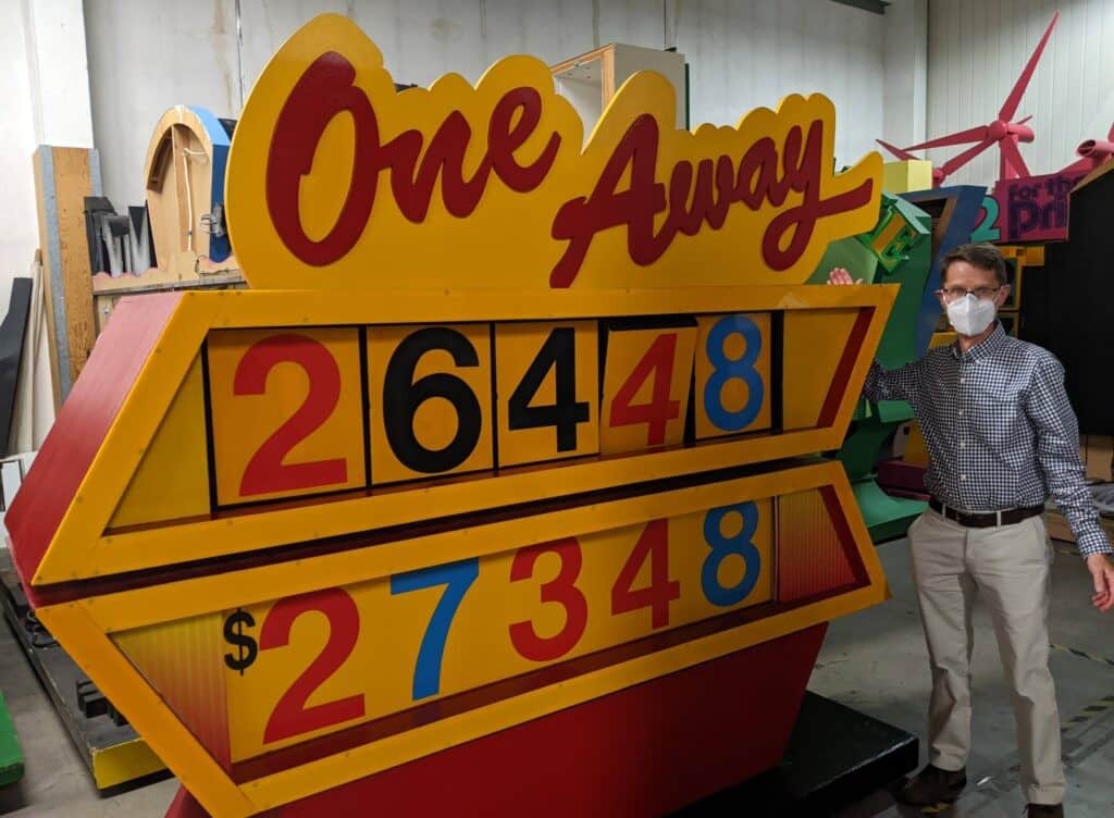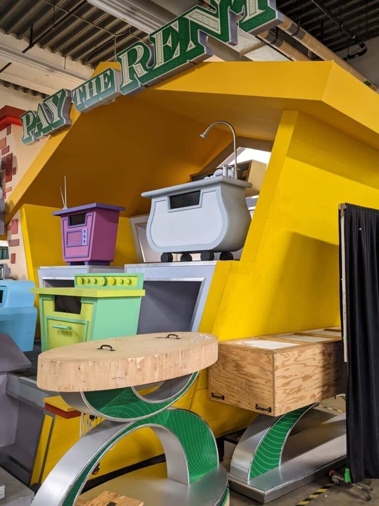 Because I was with a Hollywood insider, prior to seeing the show, I had the chance to tour the vast backstage areas of Television City Studios, the former home of CBS and the Bob Barker studio, where The Price Is Right has taped for more than five decades. The studios have also housed scripted programs, from All in the Family in the 1970s to current soaps like The Young and the Restless. I’m used to impressing behind-the-scenes visitors to The Strong with the museum’s sizable collection storage areas, but they can’t compare to the sheer acreage of indoor space that I saw across multiple floors of the studio. Beyond the generic set elements and props staged for future use, I found myself in the storage area for past and present Price Is Right games, a veritable forest of painted plywood structures. Games like Pay the Rent and One Away stood with dozens of others, waiting in the wings to be called back into duty on an upcoming episode.