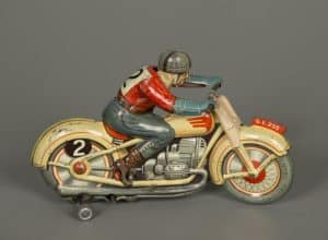 This rush and the mastery of the machine results in an exhilarating and satisfying ride every time. Skill and confidence, which come only with experience, make truly enjoyable motorcycle riding possible (as does a sunny summer day). Give it a try; you just might find you like it as much as I do. Be sure to take a lesson or two before you pull out into traffic. Until then, stick with toy versions like the motorcycles in The Strong’s collections.