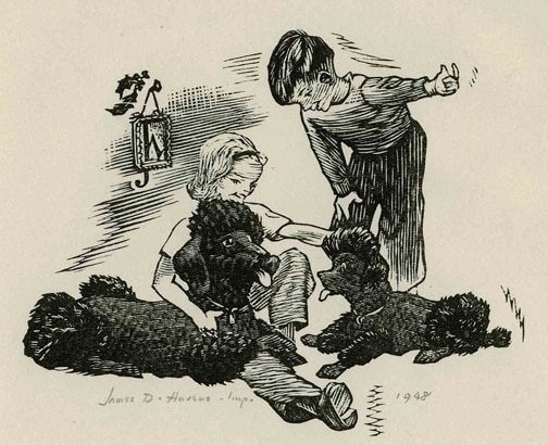 This was a delightful and somewhat vengeful game for Charlie. But then, in a remarkable turn, Darby discovered something Charlie wanted more than revenge: a buggy-eyed, red rubber beetle that squeaked in a most beguiling way. Darby would stop at the stuffed chair, cast a glance over his shoulder to make sure that Charlie was watching, and then take off, feet churning again in the effort to find some traction, the prize in his mouth, the doodle at his heels, and the humans diving for cover. Darby’s strategy replaced rough and tumble play with a gentler game of keep-away-a doggie version of win-win. The next day we observed that the two had reached an accord, and the fierce little lamblike mutt literally lay down and snuggled up with his new, more respectful, lion-colored friend.